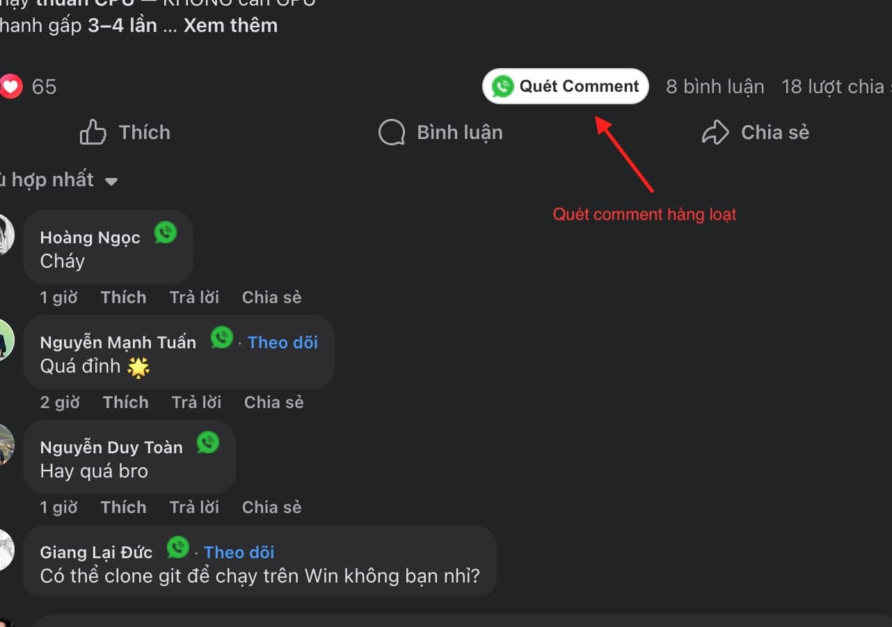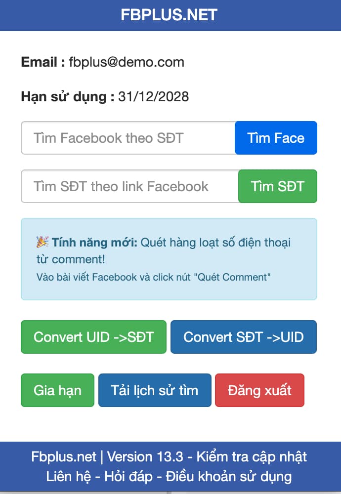 Chào bạn bên mình mới Update Tool phiên bản 13.3 bổ sung tính năng quét hàng loạt bình luận và lưu thêm tên vào lịch sử tra cứu, bạn update lên bản mới nhất là thấy nhé, cảm ơn bạn